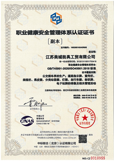 職業健康安全管理體系認證證書