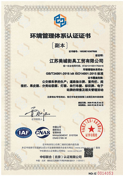 環境管理體系認證證書