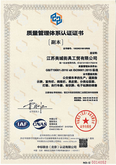 質量管理體系認證證書